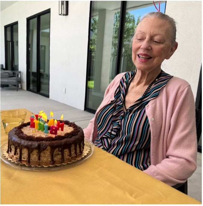Mimi continues to be well cared for and very comfortable at Torbrook Manor. With just 12 residents, it has a warm feeling, and she enjoys the company of the other residents. I visit her several times a week and take her out for lunch when I can. Torbrook keeps everyone busy with activities, and they hosted a nice birthday celebration for Mimi in April when Pam visited.